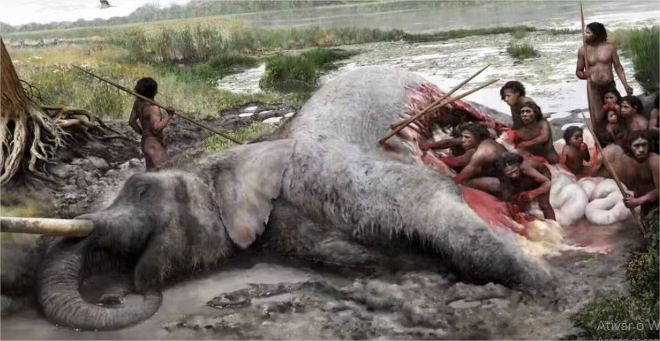 O animal, um macho de aproximadamente 30 anos, forneceria cerca de 3.500 quilos de carne, gordura e órgãos, alimento suficiente para sustentar um grupo por longos períodos. Mas o cenário vai além de uma única caça.