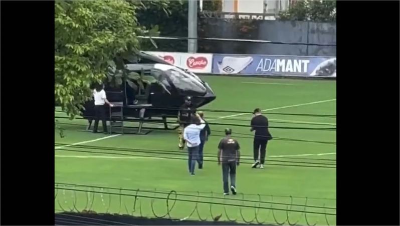 Neymar chegou por volta das 8h15 desta segunda-feira no CT Rei Pelé para seu primeiro treino neste retorno ao Santos. O camisa 10 desembarcou de helicóptero no local.