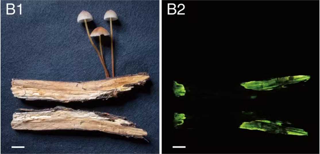 Acontece que, ao levar o cogumelo para o estúdio de fotografia, perceberam que se tratava de uma espécie que até então não se sabia ser bioluminescente: a Mycena crocata, conhecida como cogumelo-açafrão.