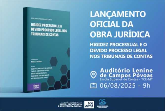 O Tribunal de Contas de Mato Grosso (TCE-MT) lança, às 9h desta quarta-feira (6), a publicação “Higidez Processual e o Devido Processo Legal nos Tribunais de Contas”. Neste, que é o segundo volume da coleção “Direito Processual de Contas”, são abordados temas como as garantias constitucionais do devido processo legal, da ampla defesa e do contraditório. O evento será no auditório da Escola Superior de Contas.