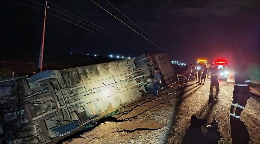 Seis pessoas ficaram gravemente feridas após um ônibus de viagem tombar na cidade de Lucas do Rio Verde (332 km de Cuiabá), na madrugada desta quarta-feira (14).