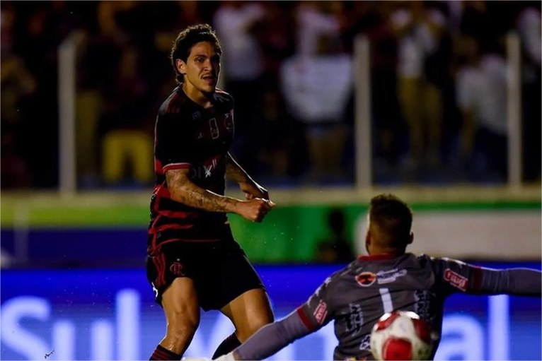 Pedro mostrou categoria ‘à la Romário’ para fazer primeiro gol – Foto: Marcelo Cortes/CRF
