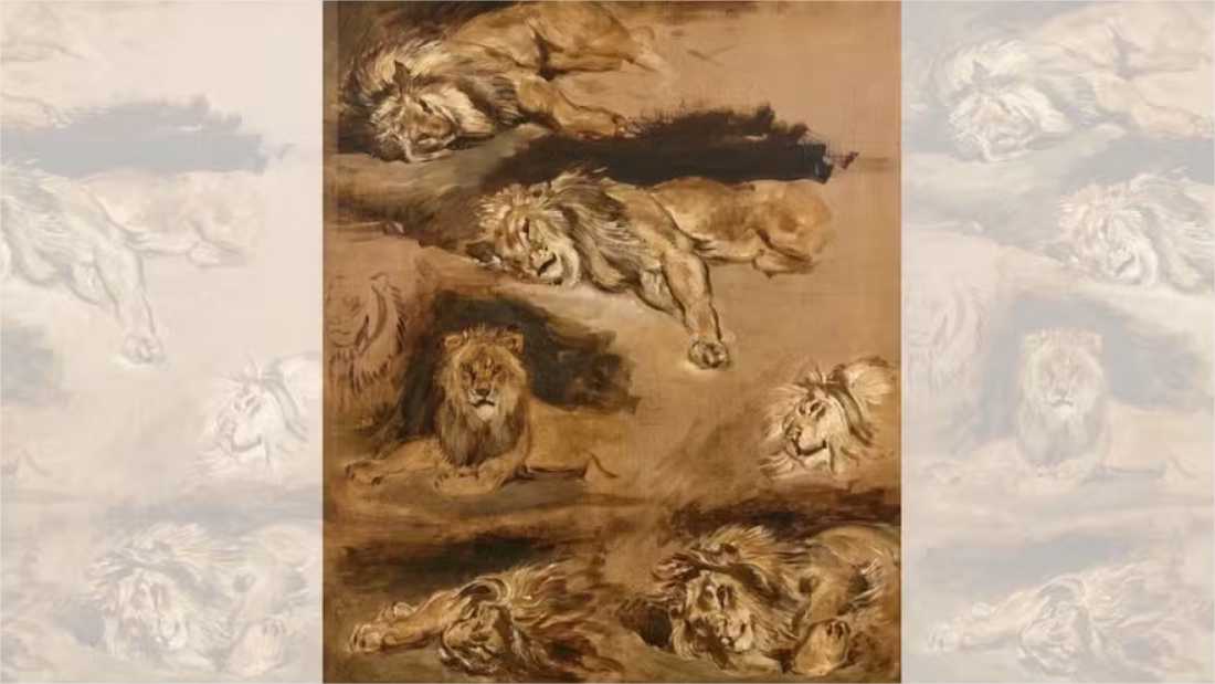Uma pintura a óleo sobre tela do artista francês Eugène Delacroix foi encontrada por um leiloeiro, em Touraine, região central da França. A obra, chamada “Estudo de Leões Reclinados”, pertenceu a uma mesma família desde 1800, e passou várias décadas escondida. No dia 28 de março, a obra arte vai ser leiloada, podendo arrecadar mais de US$ 330.000 (equivalente a R$ 1,894 milhão).