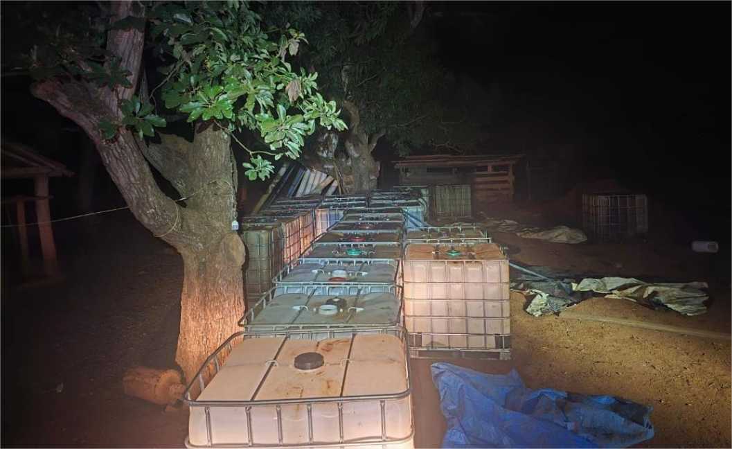 A maioria dos 22 contêineres localizados estava cheia de óleo diesel. Também foram encontrados diversos motores utilizados para a transferência de combustível e havia mangueiras distribuídas pelo terreno.