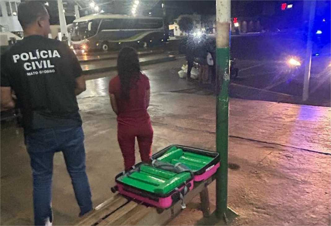 A Polícia Civil prendeu uma mulher neste sábado (22.3), na rodoviária de Tangará da Serra, após ser flagrada transportando 16 quilos de drogas em uma mala. A ação foi executada pela por meio da Divisão Especializada de Repressão a Narcóticos da Delegacia Regional do município.