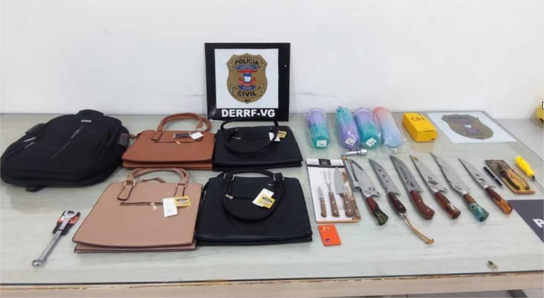 As investigações iniciaram no sábado (2), após a vítima procurar a Derf-VG e relatar o crime de furto qualificado em sua empresa, no bairro Jardim Novo Mundo, em Várzea Grande, em que foram subtraídos diversos objetos, como facas e diversas ferramentas personalizadas, além de armas de pressão e celular.