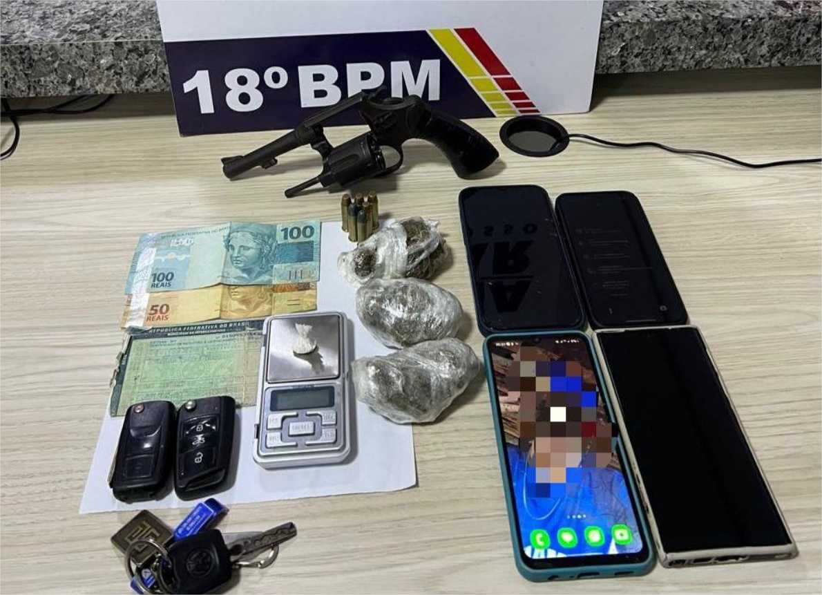Os suspeitos foram abordados e não apresentaram resistência. Com um deles, os militares localizaram um revólver de calibre .38 carregado com seis munições intactas. Questionado sobre o objeto, o homem não se pronunciou.