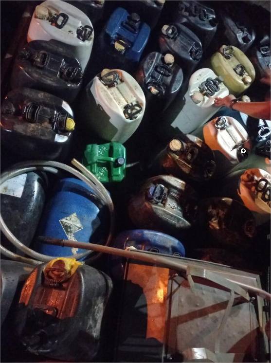 De acordo com boletim de ocorrência, o suspeito continha 21 galões com combustível e outros 14 recipientes vazios. Além disso, o homem portava um carinho de mão de uma empresa na carroceria do veículo.