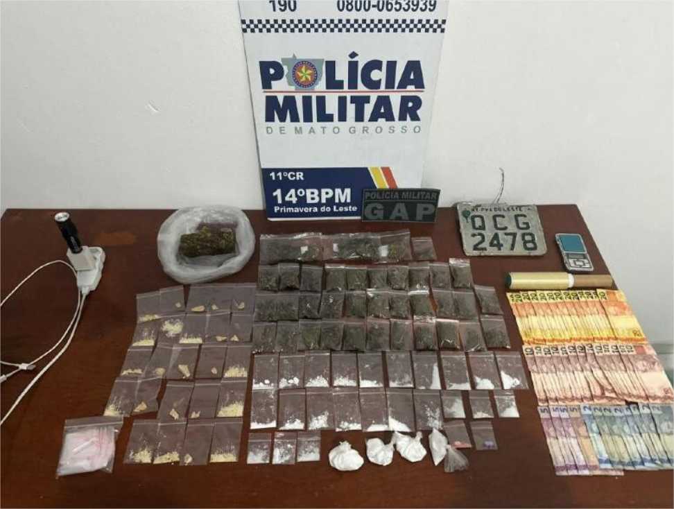 Duas mulheres, suspeitas de integrarem uma facção criminosa, foram presas em flagrante em Primavera do Leste (234 km de Cuiabá), por tráfico ilícito de drogas. Com elas, as equipes apreenderam 90 porções de substâncias análogas à pasta base de cocaína, skank, cocaína e R$ 446 em espécie.