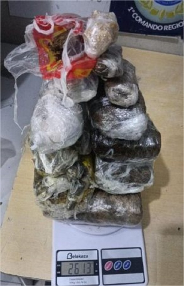 A guarnição da Polícia Militar de Mato Grosso apreendeu mais de dois quilos de entorpecentes, entre porções de maconha e pasta base de cocaína, além de duas balanças de precisão e R$ 1.164 em espécie.