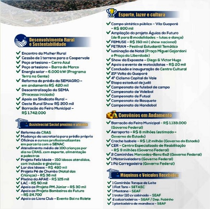 7 – fechamento de convênio com o governo do estado para revitalização do aeródromo do município.