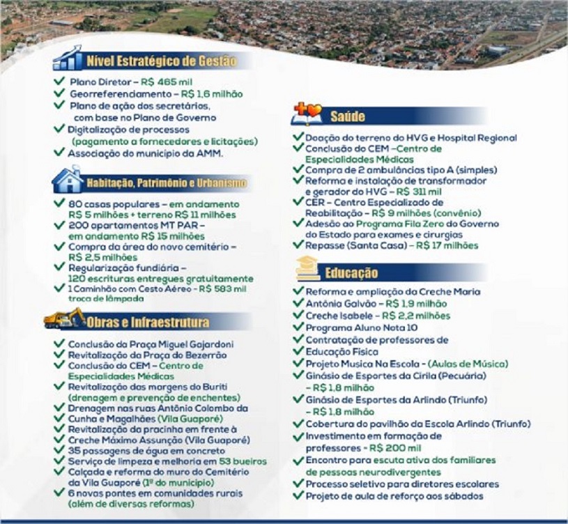 Por isso, Jackson Bassi gosta cetar que priorizou eficiência e transparência. “Em nível estratégico estamos promovendo a atualização do Plano Diretor e fizemos o Georeferenciamento de toda a cidade. Estamos em implementação de processos digitais de pagamento de fornecedores e licitação para reduzir consumo de papel, melhorar a eficiência dos processos e ampliar a transparência”, sintetizou o chefe do Poder Executivo.