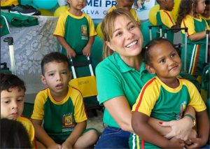 Flávia Moretti reafirmou o seu compromisso com a Educação e disse que, assim como em 2026 os uniformes foram entregues no início do ano letivo, os próximos anos também serão.