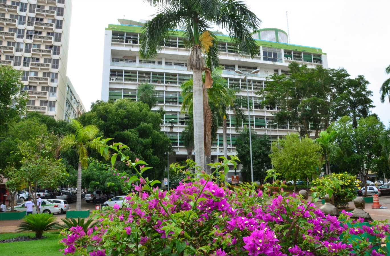 A foto mostra a fachada da Prefeitura de Cuiabá iluminada com a cor lilás, uma referência à campanha “Agosto Lilás”, mês dedicado à conscientização e ao combate à violência contra a mulher