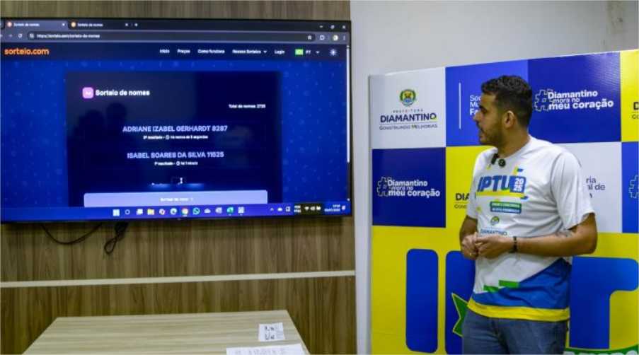 O sorteio foi transmitido ao vivo pelo Instagram da Prefeitura de Diamantino e premiou quatro contribuintes, sendo dois que optaram pelo pagamento em cota única e dois que mantêm o parcelamento em dia.