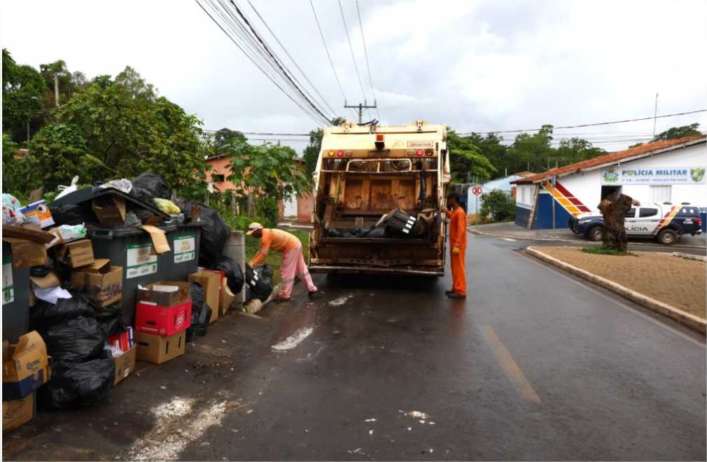 Os caminhões compactadores de lixo percorreram todas as ruas do distrito, além de recolherem os materiais armazenados em contêineres na Rodovia Helder Cândia – MT-010.