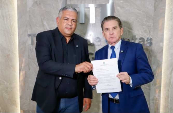 Presidente do TCE, conselheiro Sérgio Ricardo, recebe presidente da Câmara de Cáceres, Flávio Negação - Crédito: Tony Ribeiro/TCE-MT