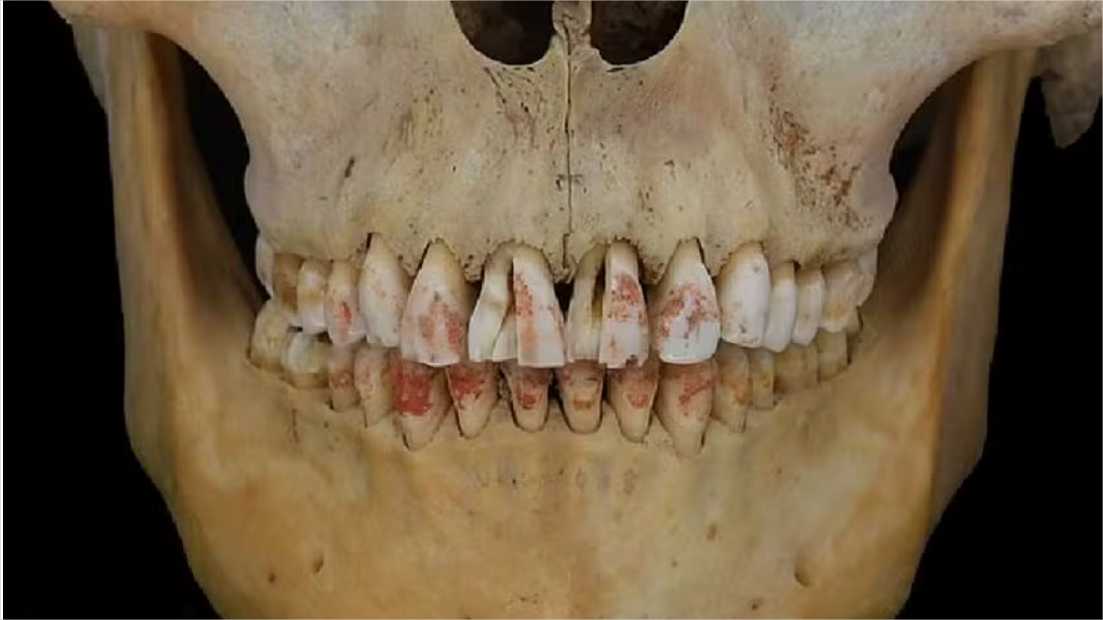 Desde o primeiro exame, os pesquisadores suspeitaram que os ossos pertenciam a uma mulher de posição social elevada, devido à tonalidade avermelhada incomum de seus dentes. Somente após a aplicação de técnicas de análise molecular foi possível confirmar que a substância era, de fato, cinábrio.
