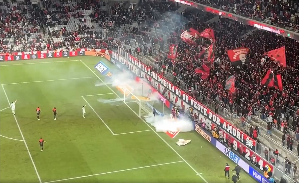 Na súmula da partida, o árbitro Marcelo de Lima Henrique relatou arremesso de isqueiros, copos e sinalizadores. Ele também relatou que paralisou a partida por conta dos sinalizadores e que a segurança do estádio e a brigada de incêndio entraram em campo em ato contínuo para agir.