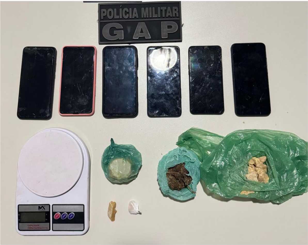 Em seguida, os policiais chegaram na casa e identificaram dois homens, que também tentaram fugir pelos fundos, sendo abordados e detidos. Já no interior do imóvel, os militares flagraram outros três suspeitos. Em buscas pela casa, foram encontradas diversas porções de entorpecentes.