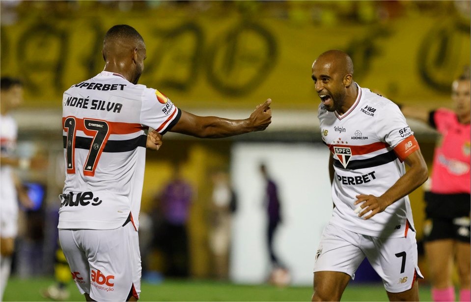 Rafael; Arboleda, Sabino e Ferraresi; Cédric, Pablo Maia (Bobadilla), Marcos Antônio, Oscar (Erick) e Wendell (Patryck); Lucas Moura (Luciano) e André Silva (Calleri)