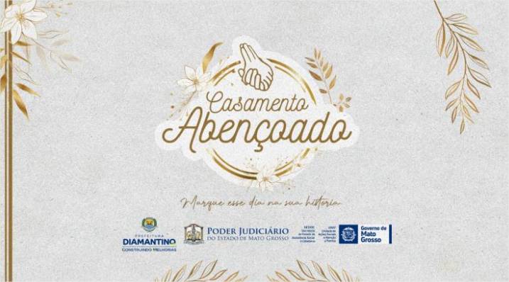 A Prefeitura de Diamantino, por meio da Secretaria Municipal de Assistência Social, Trabalho e Cidadania abriu as inscrições para o Casamento Abençoado, iniciativa que visa garantir a regularização civil gratuita de casais interessados em legitimar a união.