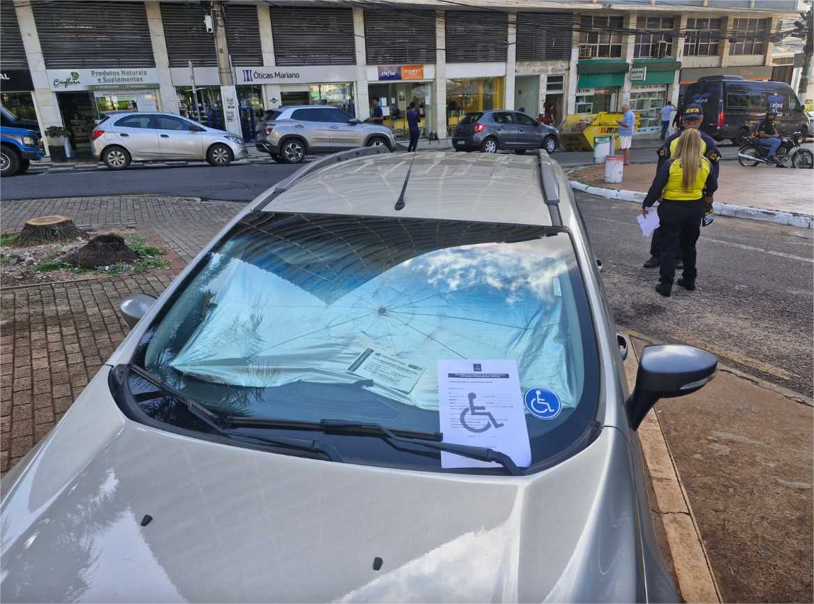 Pela manhã da última sexta-feira (4), agentes de trânsito circularam na Praça Alencastro para verificar se veículos estacionados nas vagas de PCDs e idosos exibiam o cartão de identificação. Ao verificar que o motorista não deixou a identificação, os agentes deixaram o formulário anexado ao limpador de para-brisas.