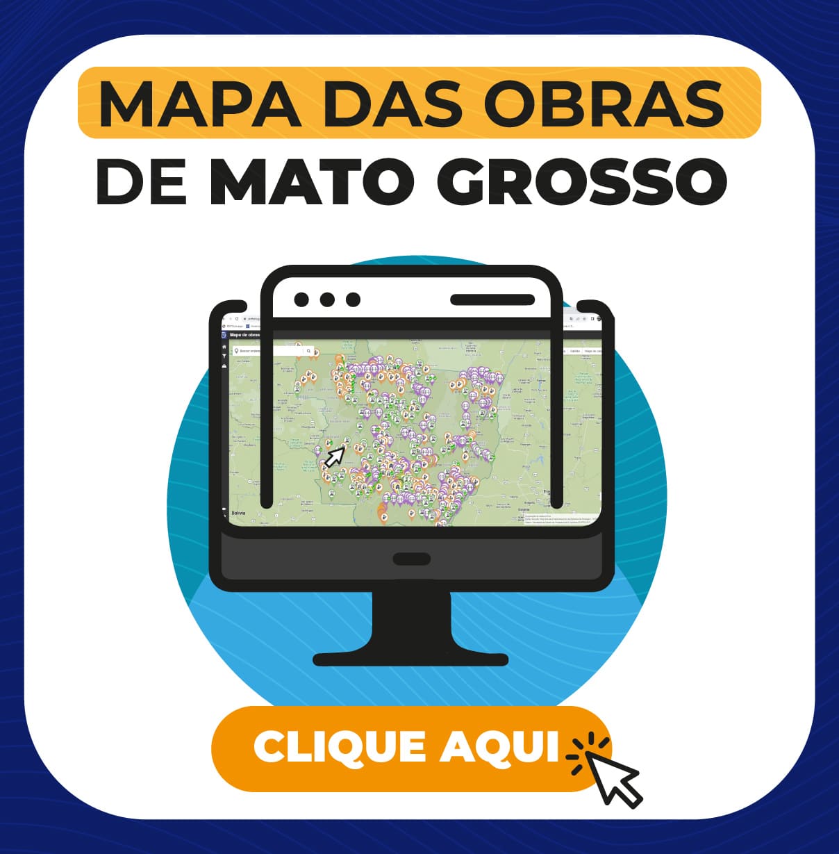 O mapa está disponível em um banner na página inicial da Sinfra, ou então por meio do endereço https://sinfralog.sinfra.mt.gov.br/obras-gov-map/#/map.