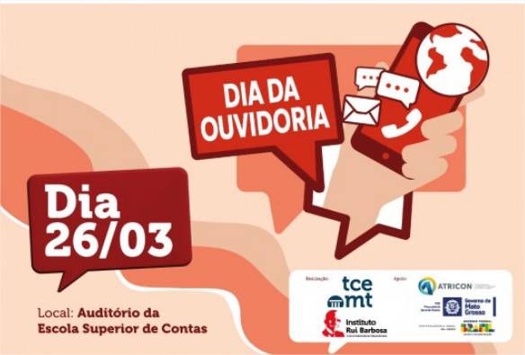 O Tribunal de Contas de Mato Grosso (TCE-MT) reúne, na próxima quinta-feira (26), ouvidores e servidores do setor de prefeituras, câmaras de vereadores, órgãos estaduais e conselhos municipais de saúde para evento em alusão ao Dia da Ouvidor, celebrado em 16 de março. O encontro, que conta com extensa programação e especialistas convidados, será no auditório da Escola Superior de Contas, a partir das 8h.