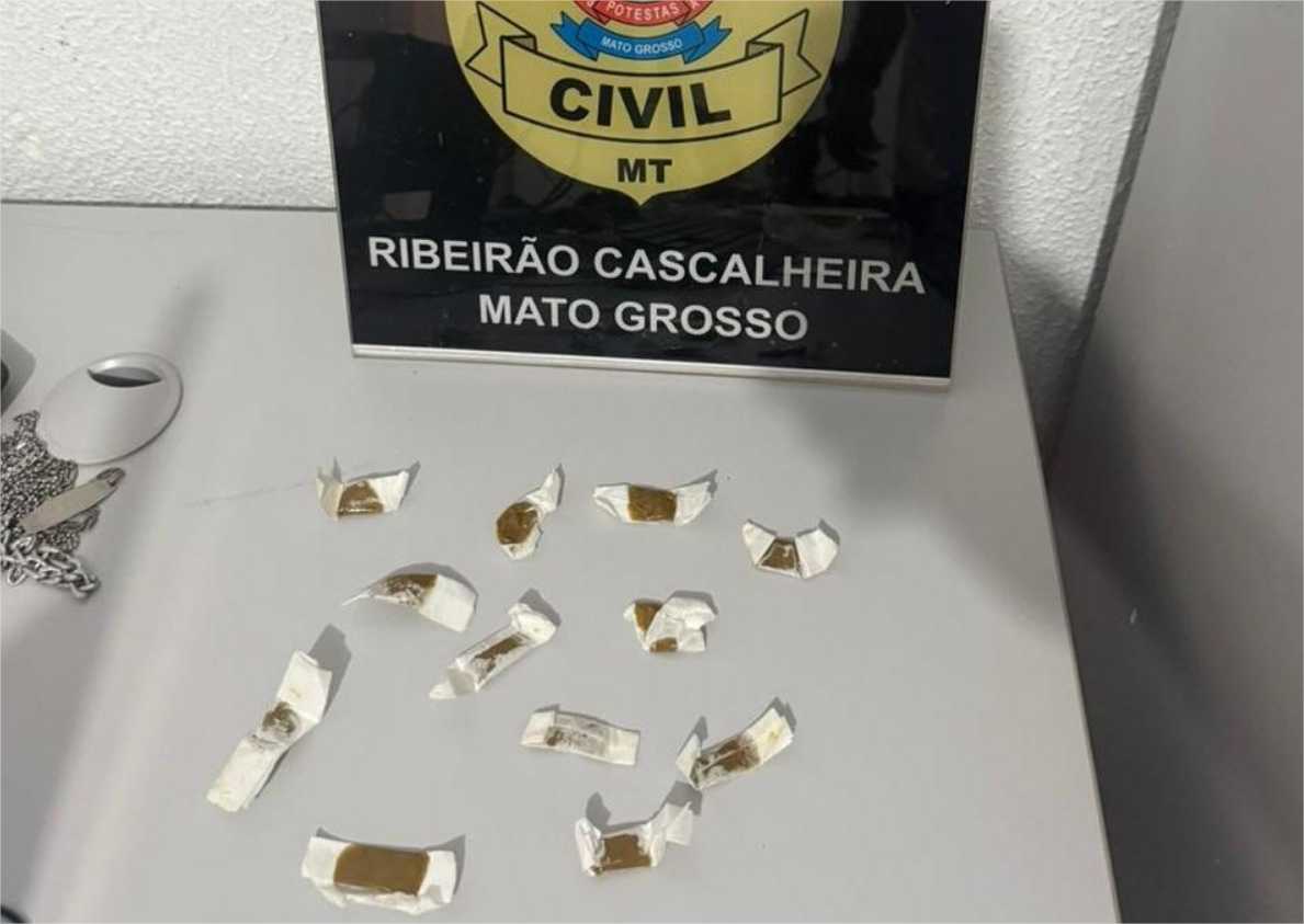 O suspeito encontrado no interior da residência assumiu ser o dono da droga. O material ilícito foi apreendido e o suspeito conduzido à Delegacia de Ribeirão Cascalheira, onde foi lavrado o flagrante por tráfico de drogas.