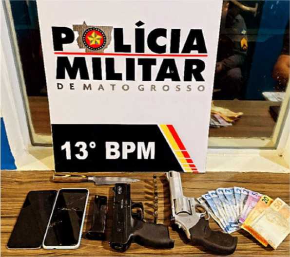 Com os criminosos, a polícia apreendeu duas armas de fogo e uma faca.