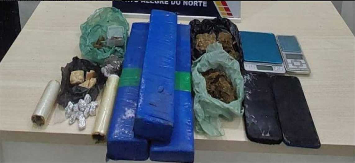 Três homens, com idades entre 21 e 35 anos, foram presos em flagrante por tráfico de drogas, na noite de sexta-feira (18), em Porto Alegre do Norte (a 1.150 km de Cuiabá). Segundo a Polícia Militar, o trio pertence a uma facção criminosa e foi detido com porções de maconha e crack, além de balanças de precisão e materiais usados para embalar entorpecentes.