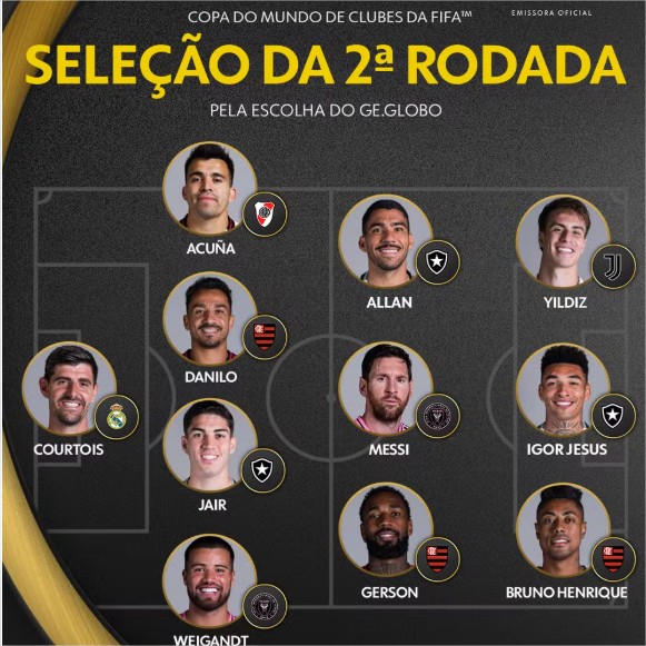 A segunda rodada se encerrou neste domingo e ficou marcada por grandes atuações dos brasileiros diante de potências europeias. O desempenho de Botafogo e Flamengo diante de PSG e Chelsea, respectivamente, culminaram em maioria alvinegra e rubro-negra na seleção da rodada feita pelo ge.