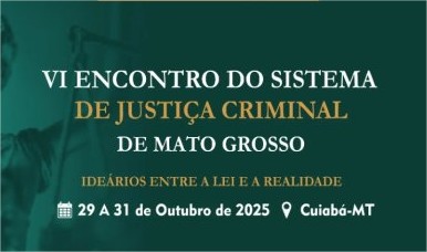 A Escola Superior da Magistratura de Mato Grosso Desembargador João Antônio Neto (Esmagis-MT) informa que será realizado presencialmente, em Cuiabá, no período de 29 a 31 de outubro, o “VI Encontro do Sistema de Justiça Criminal do Estado de Mato Grosso – Ideários entre a Lei e a Realidade”.