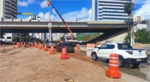 A Secretaria de Infraestrutura (Sinfra) já iniciou os reparos no local, e, para viabilizar os trabalhos, foi necessário realizar mudanças no fluxo de trânsito. O sentido centro-bairro foi desviado para a parte inferior do viaduto, criando uma pista de mão dupla na região.